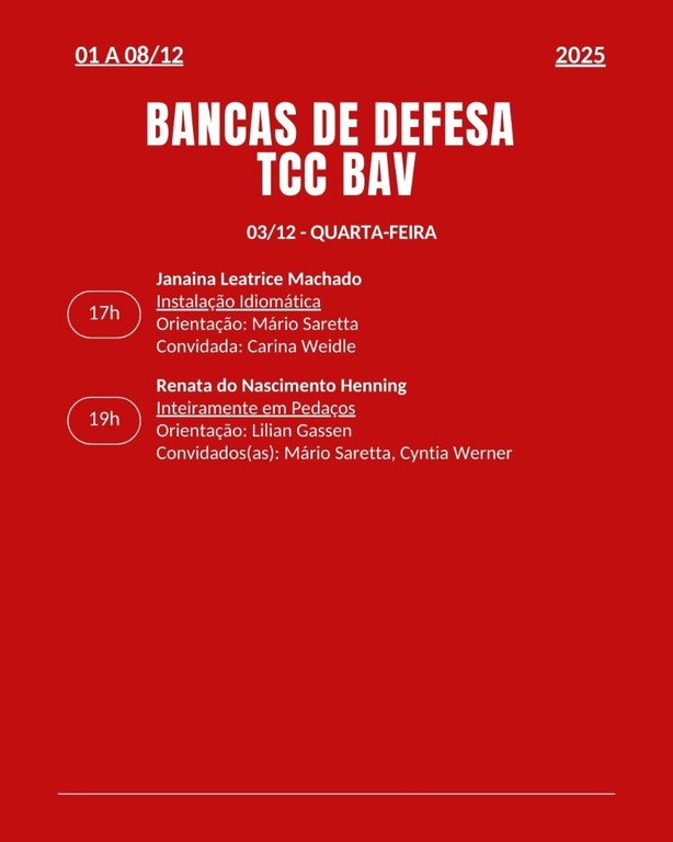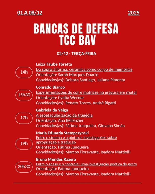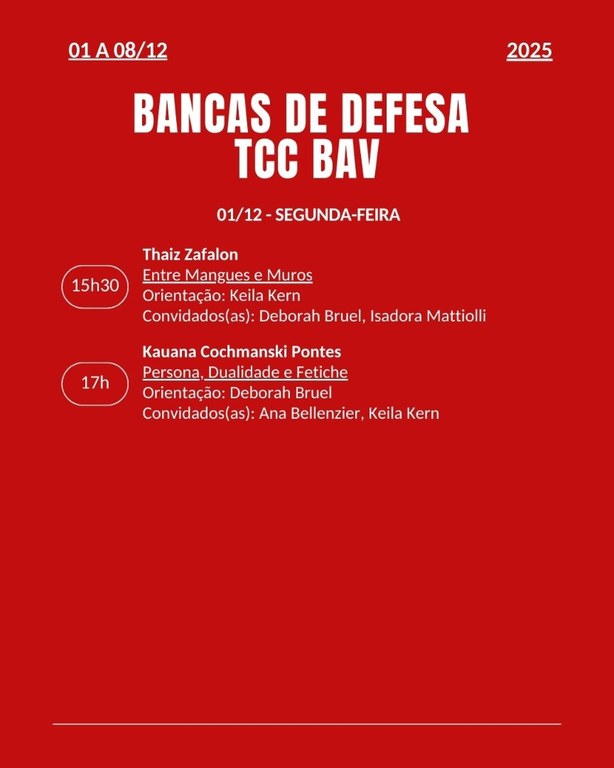 Calendário das Bancas de Defesa de TCC 2025 - BAV
