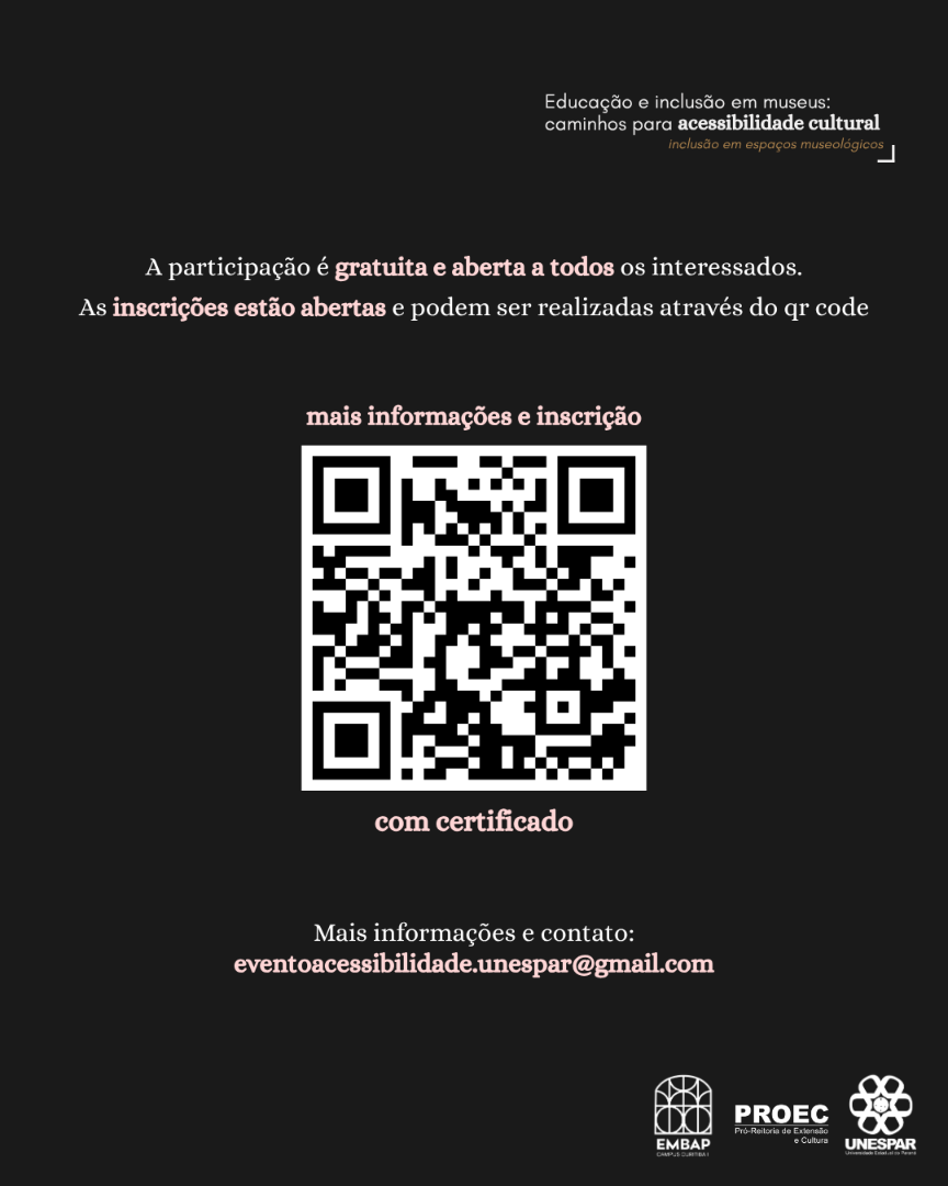 Você está aqui: Página Inicial > Notícias > 2025 > Novembro > Bacharelado em Museologia da Unespar promove rodas de conversa sobre acessibilidade cultural, inovação e anticapacitismo > 7.png