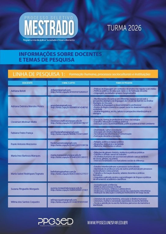 Mestrado Interdisciplinar Sociedade e Desenvolvimento abrirá inscrições em 1º de setembro
