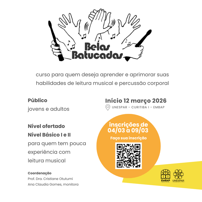 Você está aqui: Página Inicial > Notícias > 2026 > Março > 🎉🎶 Projeto de extensão Belas Batucadas 🥁